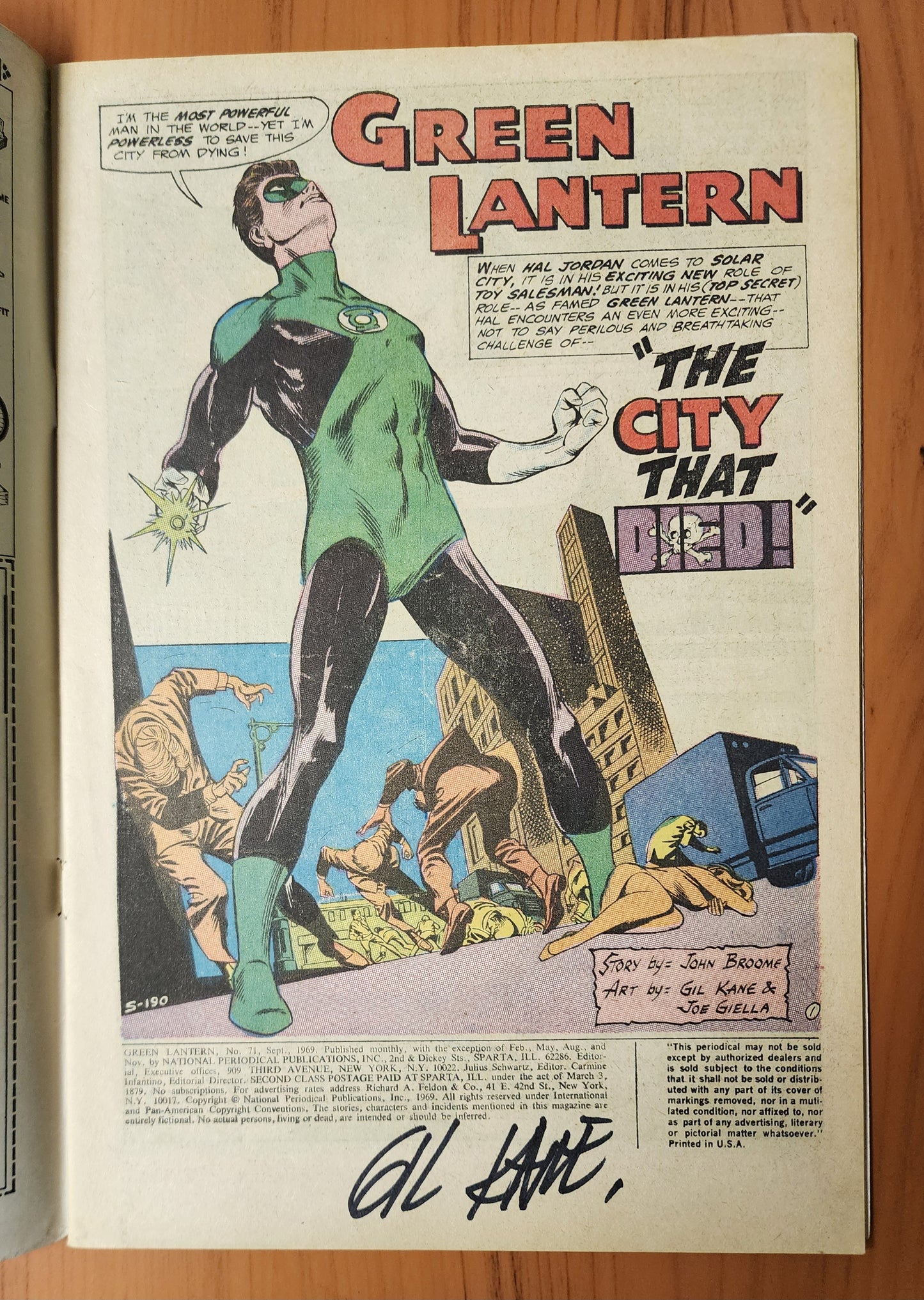 GREEN LANTERN #71 1969 SIGNED BY GIL KANE INTERIOR PAGE