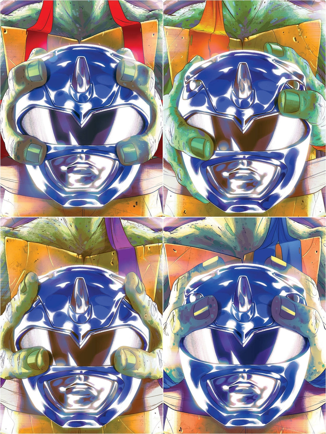 POWER RANGERS TEENAGE MUTANT NINJA TURTLES #3 MONTES BLUE HELMET VARIANT SET OF 4 2020